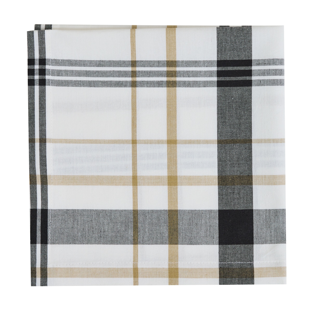 Bring a bold yet timeless touch to your table with the Slade Plaid Napkins Set/4. Featuring a crisp white background accented by striking black and warm gold plaid, these napkins offer a fresh, modern take on classic farmhouse style. Whether you’re setting the table for a casual family breakfast or an elegant dinner gathering, their versatile design adds a refined yet inviting charm to any setting.