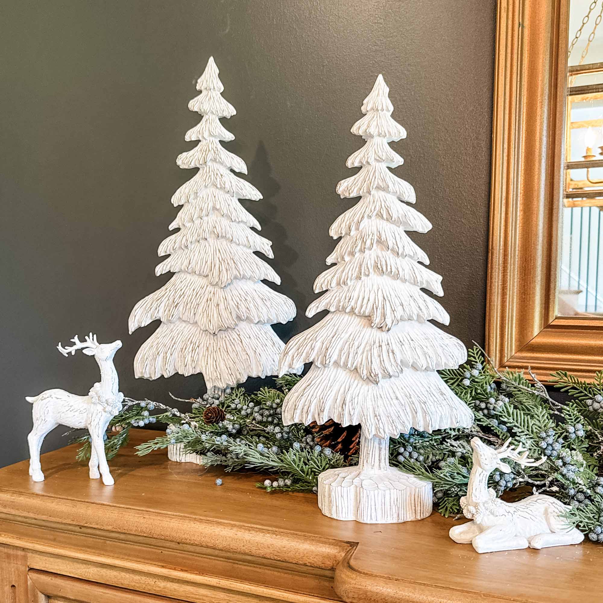 Capture the quiet magic of winter with the Snowdrift Trees set, a serene and stylish addition to your holiday décor. Crafted from durable resin, each tree features a beautifully carved pine silhouette with soft, white-washed tones that evoke the peaceful elegance of freshly fallen snow. The rustic detailing and smooth round bases offer a perfect blend of natural charm and refined simplicity.