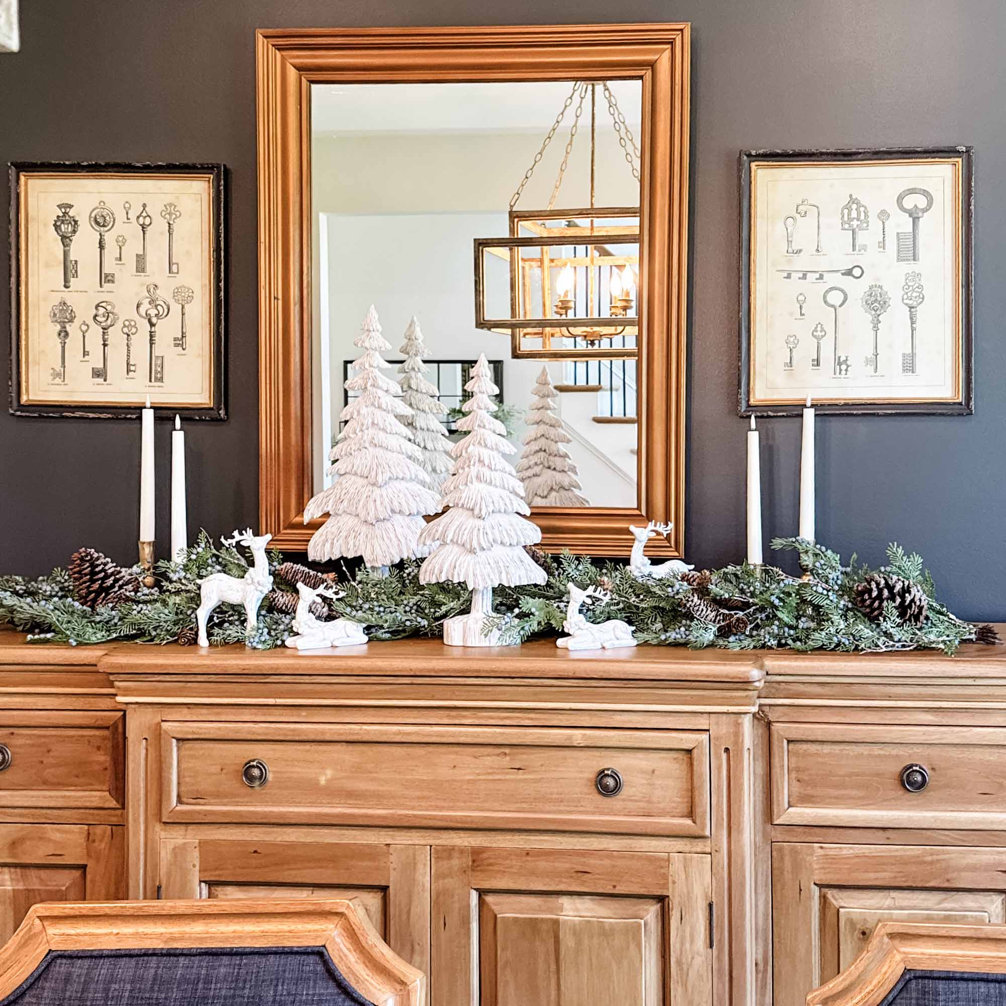 Sold as a set of two assorted sizes, these peaceful snow-kissed trees are ideal for creating height and dimension in your seasonal vignettes. Whether arranged on a mantel, nestled among candles on a table, or paired with woodland figurines and holiday greenery, the Snowdrift Trees bring a calming, wintry, timeless beauty to any display.
