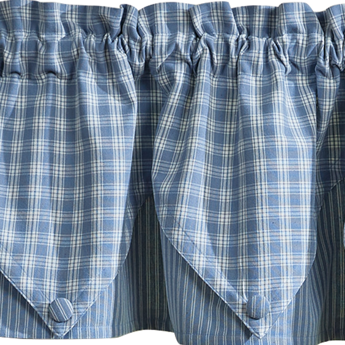 Bring a touch of timeless country charm to your home with the Stafford Dusk Point Valance. Designed in a soothing mix of soft blue and cream, this farmhouse-inspired valance effortlessly blends two classic patterns—delicate plaid and vintage-style ticking—for a look that’s both rustic and refined.