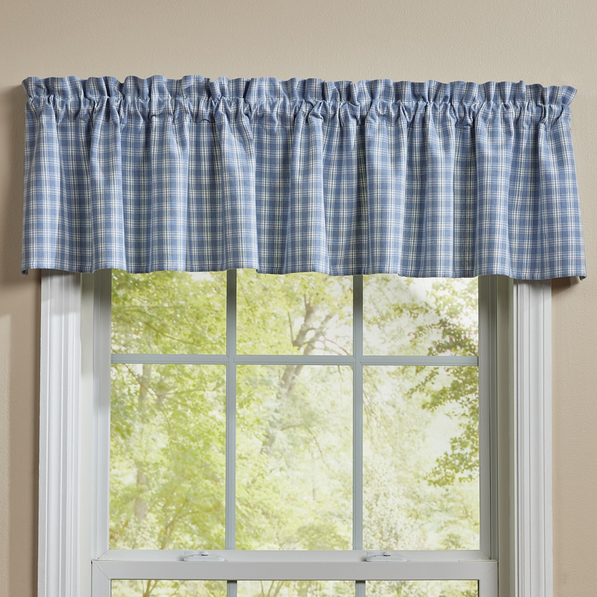 The Stafford Dusk Valance brings a touch of timeless farmhouse charm to your home. Featuring a soft blue and cream plaid, this valance creates a warm, inviting ambiance while gently filtering natural light. Whether dressing up your kitchen, breakfast nook, or living space, it effortlessly blends traditional elegance with modern comfort.