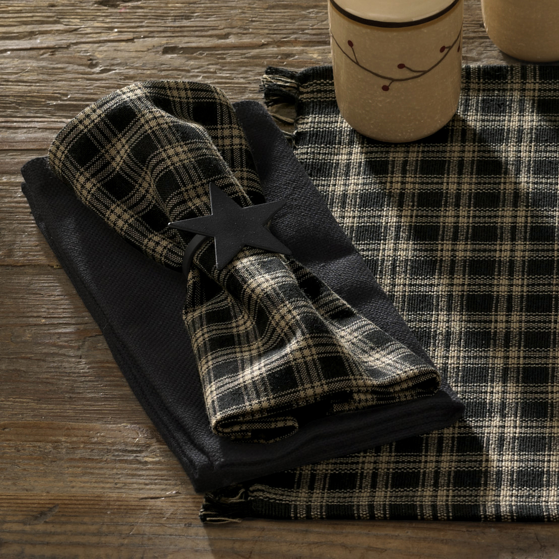 Add classic elegance to your table setting with the Sturbridge Black Napkin. Featuring a traditional black and tan plaid, this 100% cotton napkin blends timeless charm with everyday practicality. Its rich, woven design suits a variety of styles, from farmhouse to colonial to rustic. Soft yet sturdy, it’s perfect for casual dining or dressed-up occasions. Pair with coordinating pieces from the Sturbridge Black Collection to create a warm, inviting tabletop that never goes out of style.