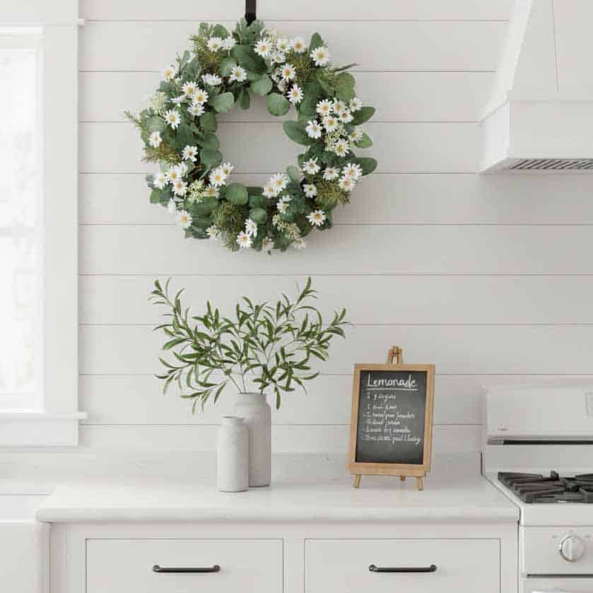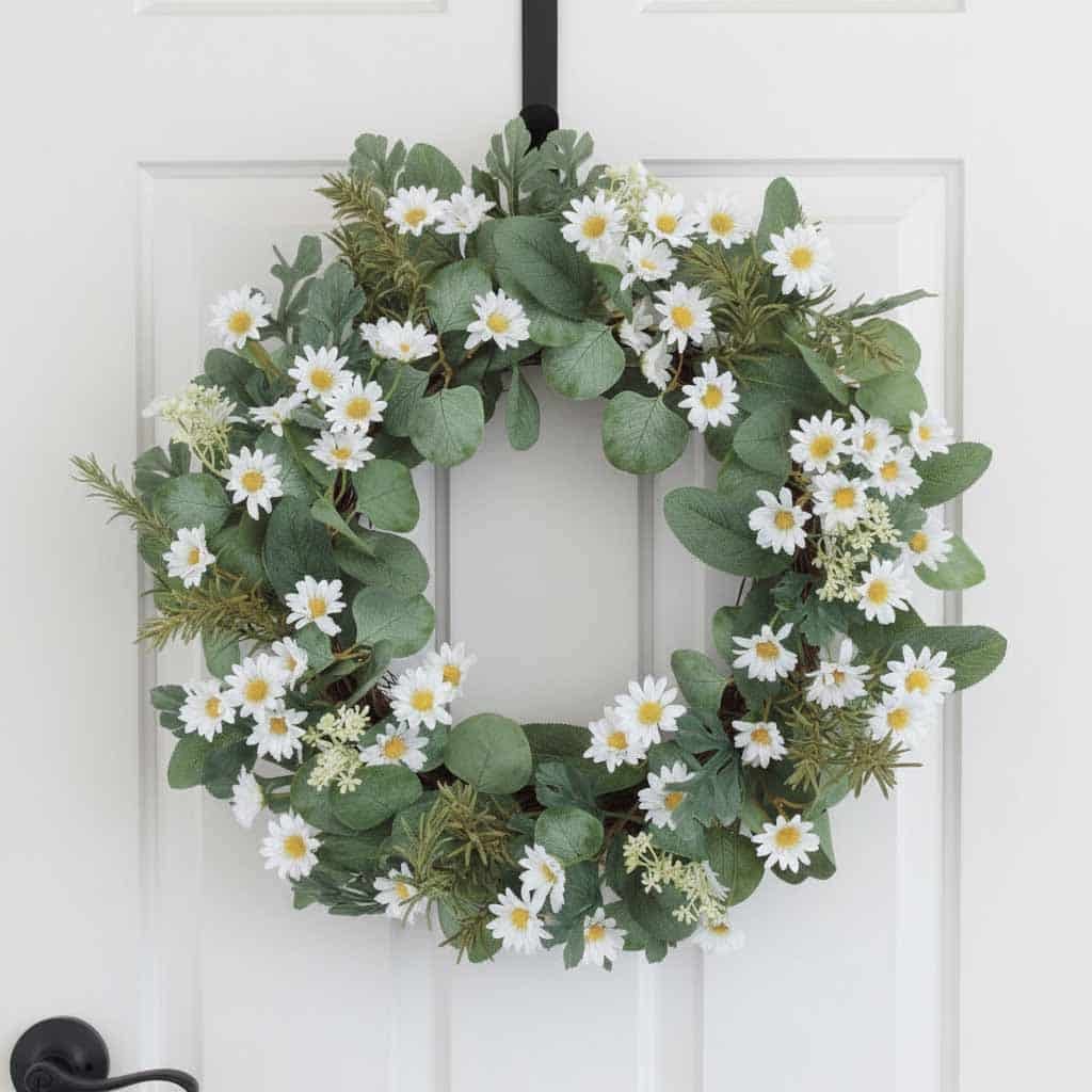 Flexible wired stems allow you to shape and fluff the greenery for a full, balanced display. Perfect for front doors, entryways, or mantels, this wreath creates a welcoming focal point that brightens your home with effortless, nature-inspired beauty. Ideal for spring and summer decorating, it offers a timeless accent you’ll enjoy season after season.