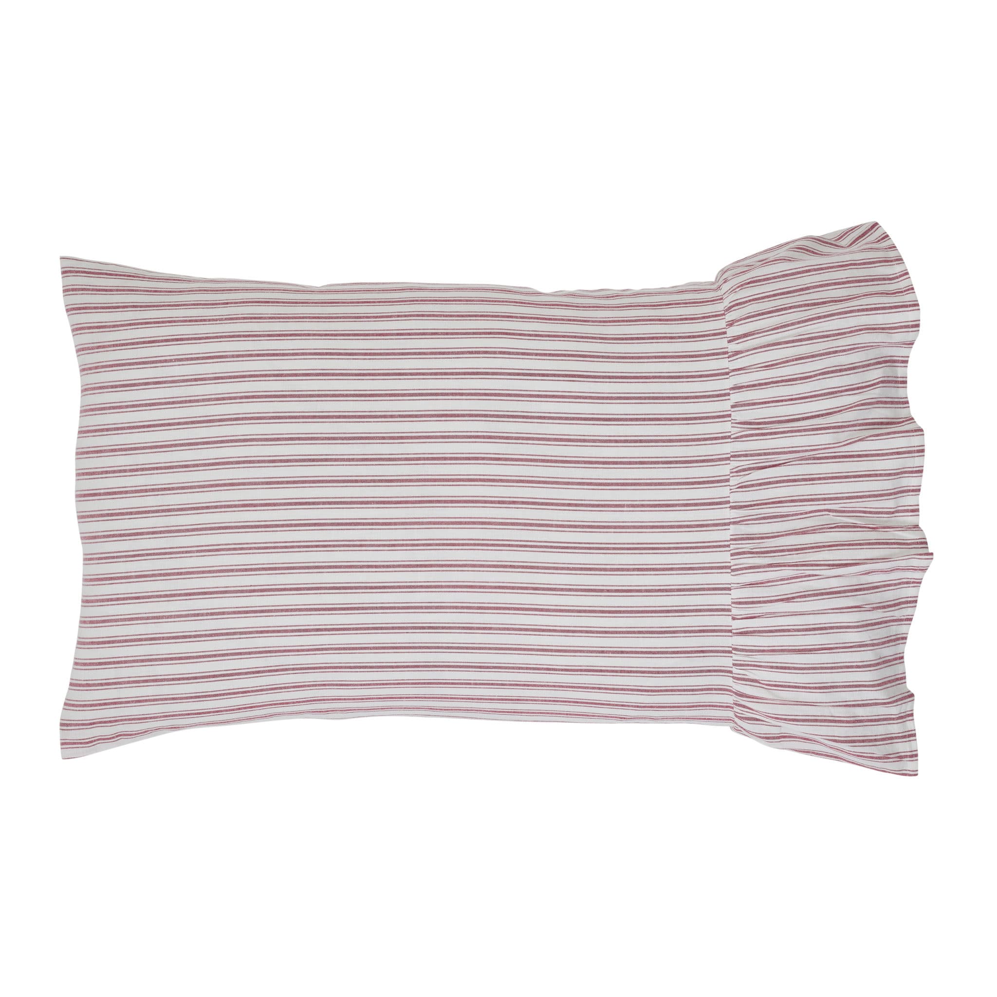 The Shams add lovely layers of softness and romance to your vintage farmhouse or upscale cottage bedroom. A gently-gathered, 8″ ruffle dresses up the open end of the pillow cover with volume and dimension, enhancing your bedroom beautifully. Sham reverses to the same ticking fabric.