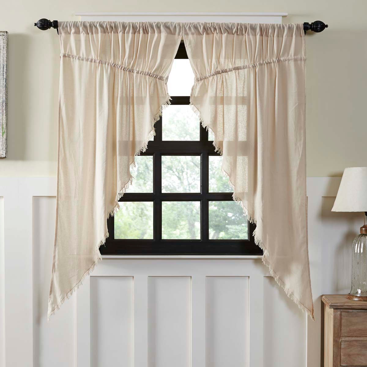 Tobacco Cloth Prairie Curtain Set creates a romantic cottage feel for your home. Featuring lightweight tobacco cloth in creamy ivory with frayed edging, these curtains are a versatile choice for accenting farmhouse kitchens, laundry rooms, and more. The gracefully angled drapes perfectly frame windows providing a bit of polish for your home. Our unlined prairie panels come with built in drawstrings to adjust each panel to meet your style needs, along with a curtain rod pocket for easy hanging.