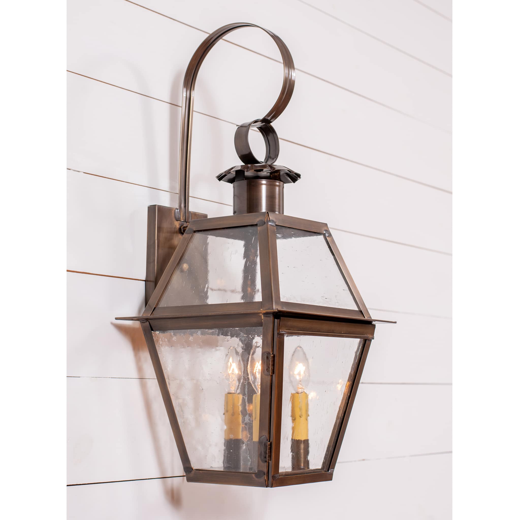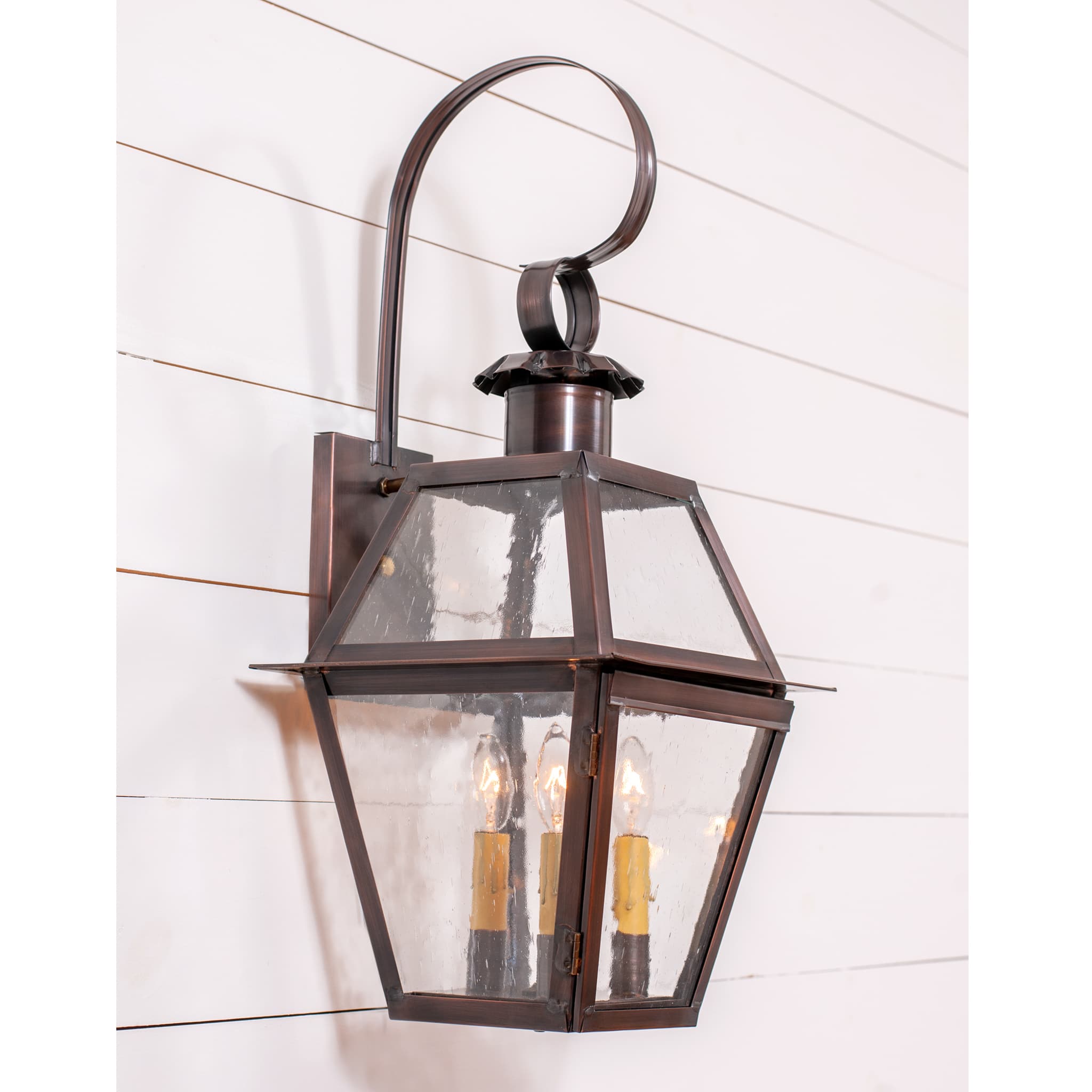 Crafted to last a lifetime, each lantern is made from solid copper or solid brass and finished with an antique patina that is sealed beneath a protective lacquer. This coating preserves the finish as it naturally deepens over time, ensuring your lanterns age gracefully without developing verdigris on the copper versions. Clear glass panels showcase the warm glow within, creating a refined, inviting ambiance for your entryway or outdoor living space. Pair with the Martha’s Post Lantern. Bulbs sold separately.