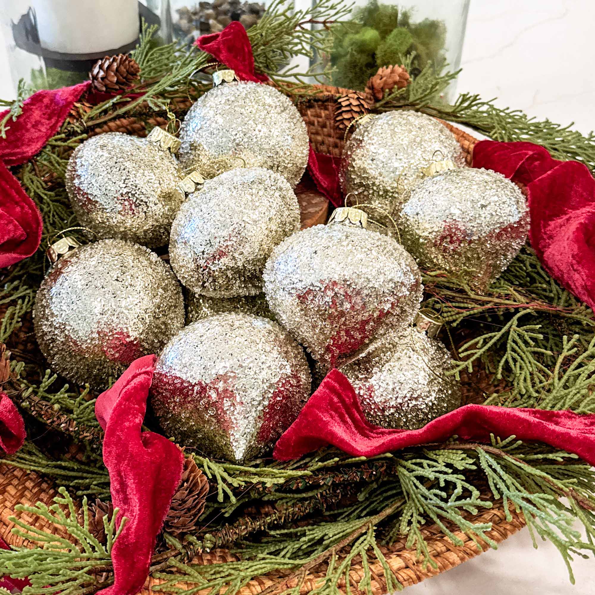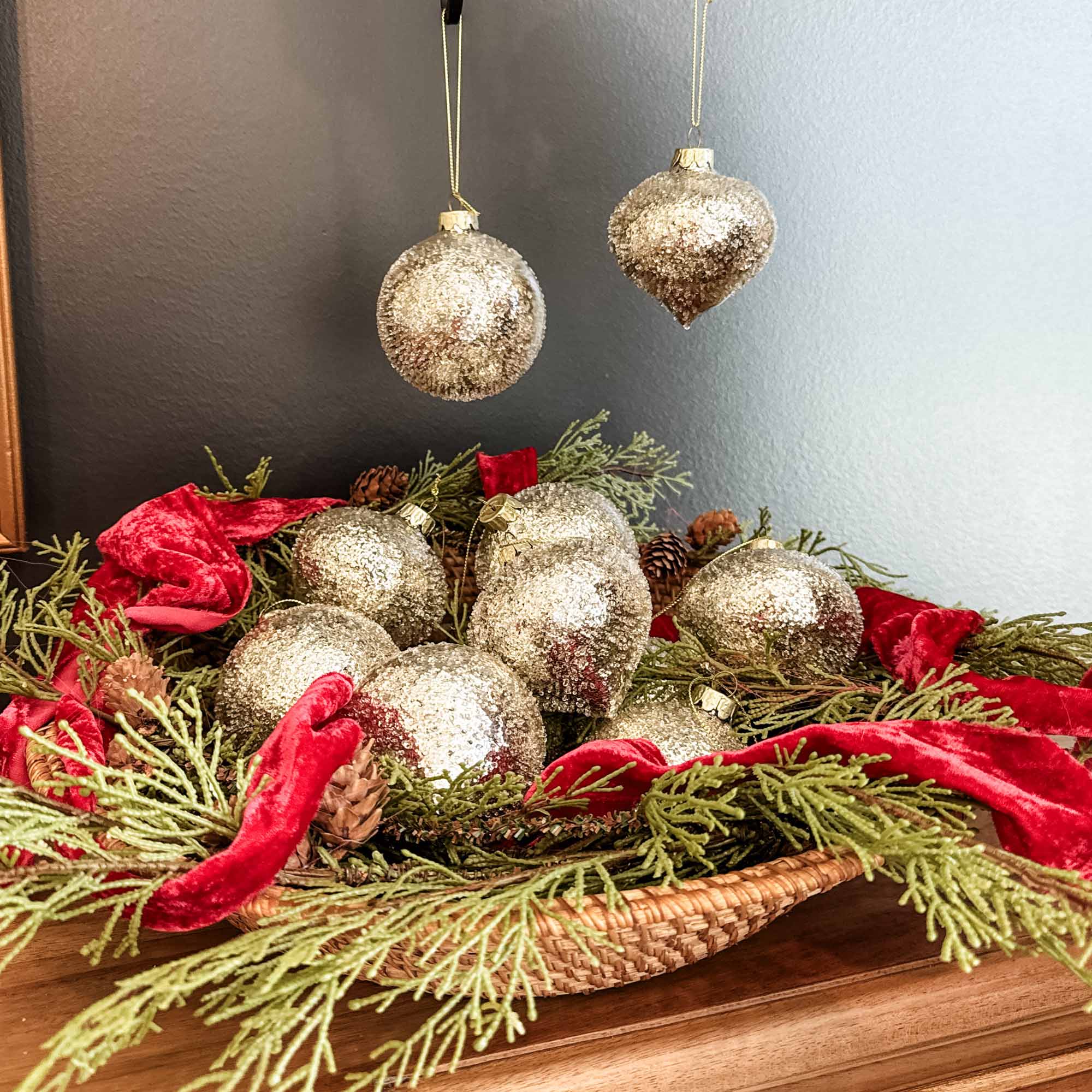 Whether hung on the tree, nestled into a garland, or styled in a decorative bowl, these ornaments add a graceful sparkle and nostalgic charm to any setting.