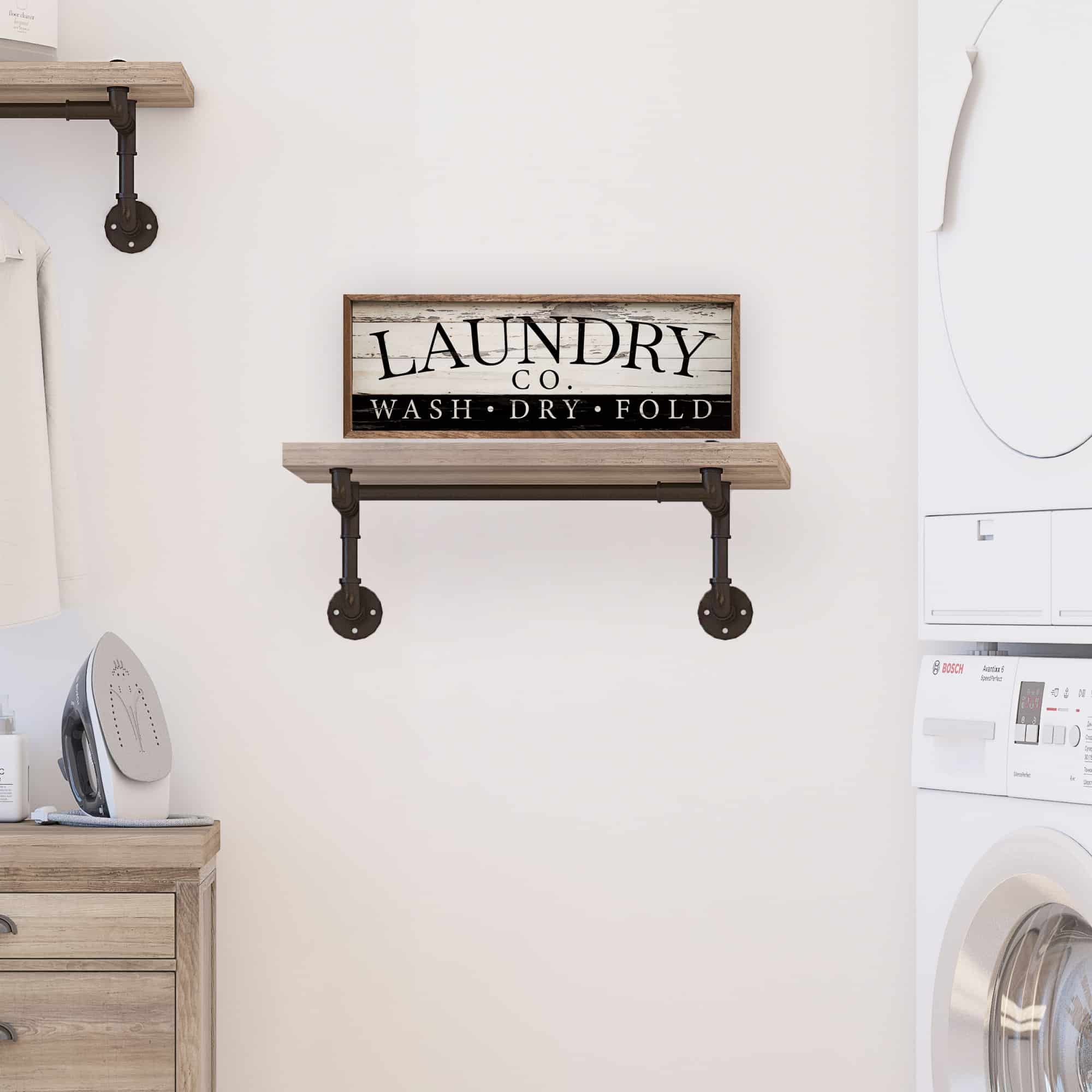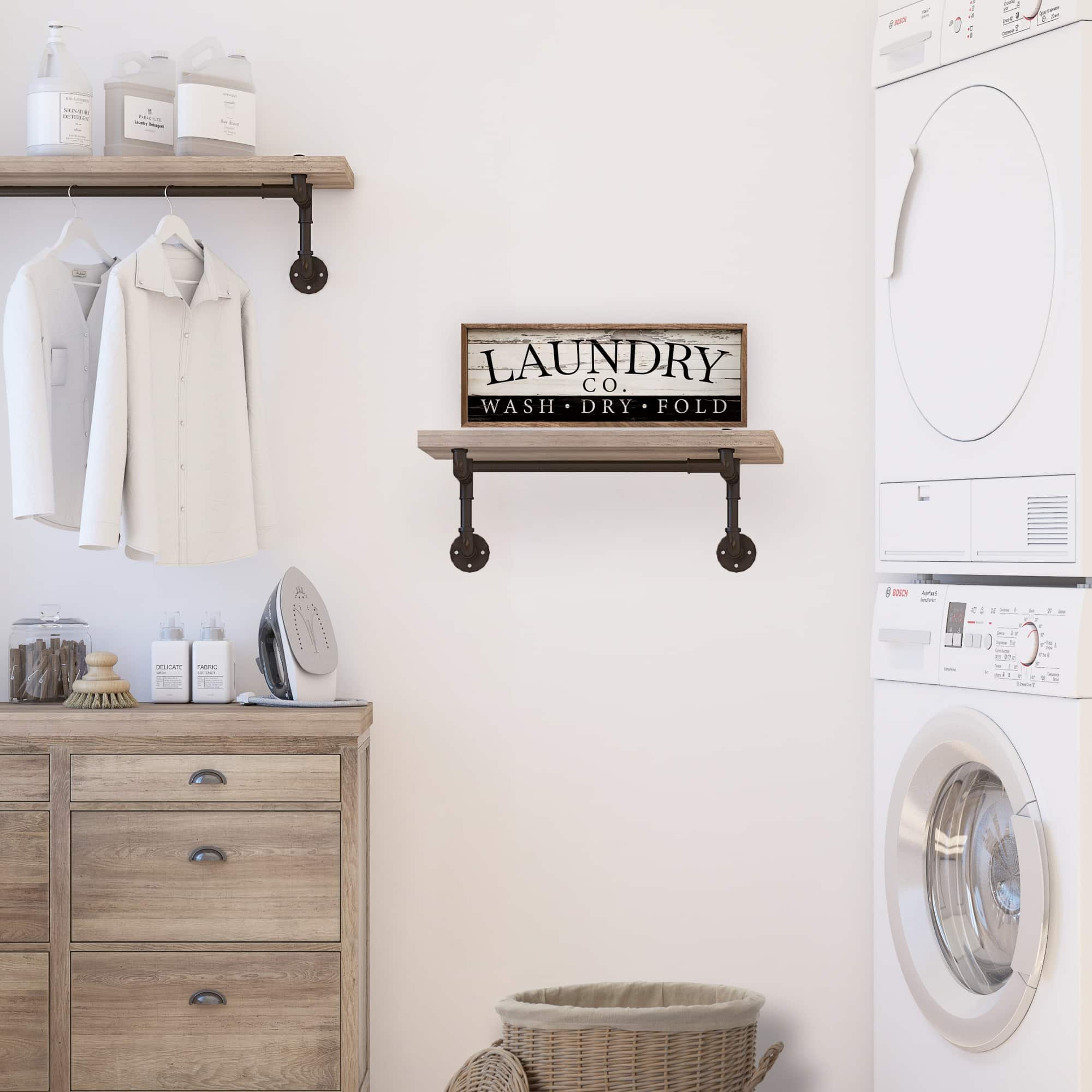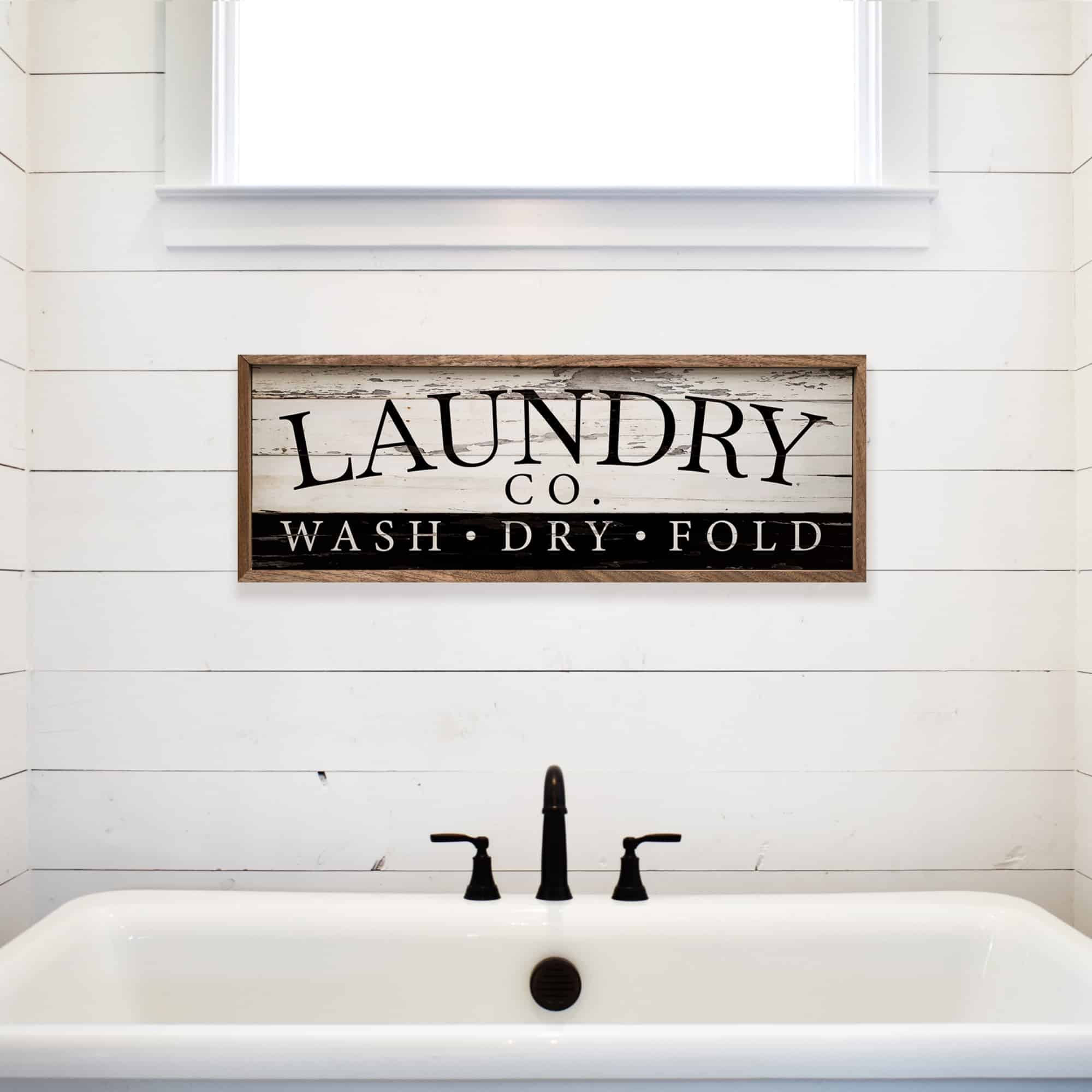 The Vintage Laundry Co. Wooden Sign is guaranteed to add a welcome rugged look to your decor with plain printed letters and a crisp two-tone design. Sporting a heavily-weathered, time-worn background, the sign adds a rustic look to your everyday laundry room with a palette that offers a sharp contrast and appealing accent. The natural wood frame lends a warm organic touch to the overall look, complimenting the neutrals in an charming, understated way. Signs are made-to-order.