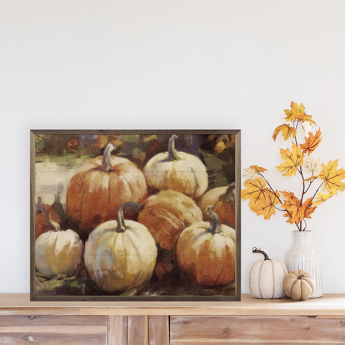 Introducing our Vintage Watercolor Pumpkin Patch Sign, a charming piece that captures the essence of autumn with artistic elegance. This sign showcases a stunning watercolor illustration of tonal pumpkins in various shades of orange, each one rendered with delicate brushstrokes and subtle gradients. Arranged in a picturesque pumpkin patch, the artwork reflects the rich, warm hues of fall and the inviting beauty of the harvest season. The vintage watercolor style imbues the scene with a nostalgic, timeless quality, making it a perfect addition to your autumn décor. Whether displayed in your home or given as a thoughtful gift, this sign brings the cozy, picturesque feel of a pumpkin patch right to your space. Ideal for enhancing any fall-themed setting, it effortlessly combines artistic flair with seasonal charm. Framed in a natural walnut frame, this piece not only adds sophistication but also showcases the warmth of the wood. Signs made to order.