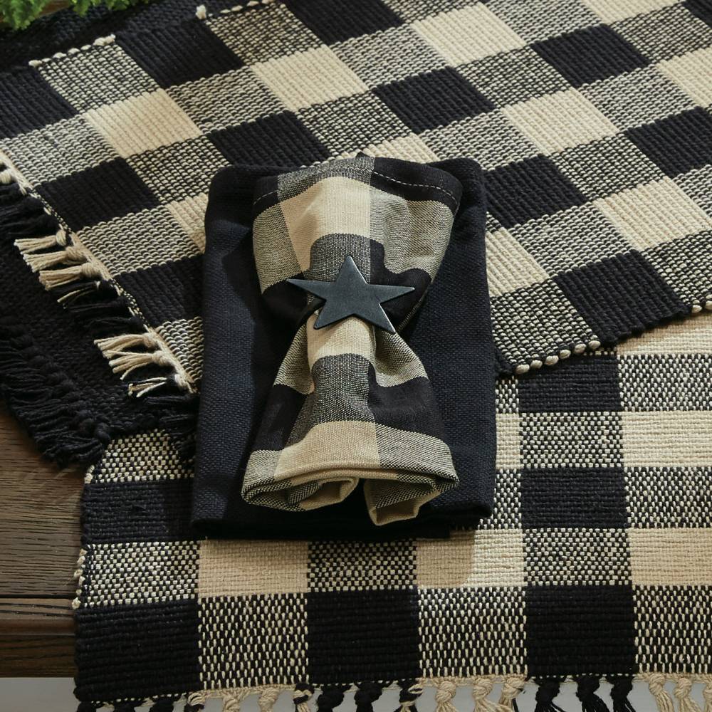 Complete your farmhouse table setting with the Wicklow Black Napkin Set. Featuring the classic black and cream buffalo check, these soft, fabric napkins made from 100% cotton bring timeless charm and casual elegance to every meal. Mix and match with placemats, runners, and curtains from the Wicklow Black Collection to create a coordinated, welcoming space. Sold as a Set/4
