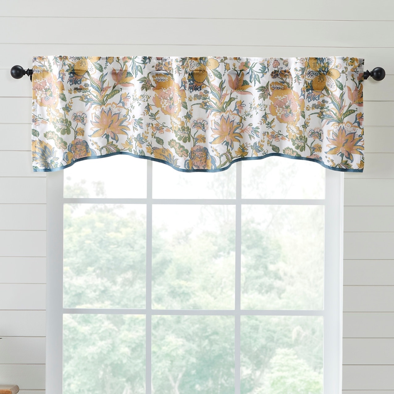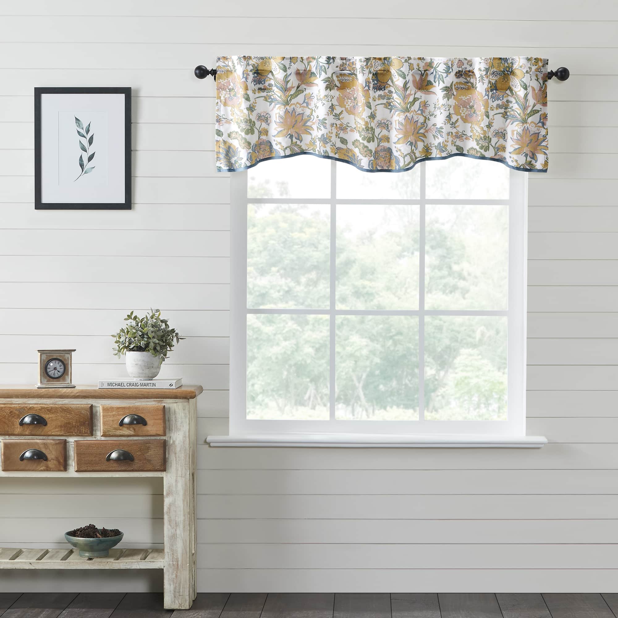 Bring a breath of vintage charm to your windows with the Wilder Valance in a wide 72-inch width. Showcasing a soft floral pattern in antique crème, dusty blue, and sage green, this feminine valance adds gentle color and timeless appeal to your cottage or farmhouse space. Made from 100% cotton and designed with a rod pocket for effortless hanging, it offers a beautiful finish to your windows, whether used alone or layered with matching Wilder panels or tiers. The 72″ width is ideal for larger windows, adding graceful movement and texture while allowing natural light to filter through.